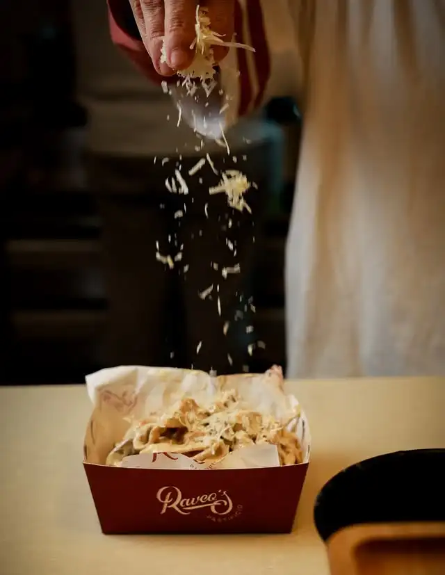 Raveo's Pastificio, İzmir’de taze ve el yapımı makarna çeşitleri sunan bir makarna restoranıdır. İtalyan pastificio geleneğinden ilham alan mutfakta makarnalar günlük olarak hazırlanır ve farklı soslarla servis edilir. Menüde tagliatelle, ravioli ve benzeri taze makarna çeşitleri öne çıkar.